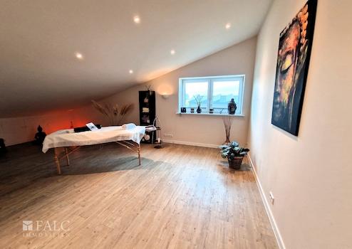 Diese vielseitige Gewerbeeinheit vereint eine moderne Stadtvilla, Fitness- und Wellnessbereich (inkl. Sauna, Infrarotkabine, Massageraum), Tanzstudio, Veranstaltungsräume, Büroräume, eine vermietete Gewerbehalle sowie einen zusätzlichen Bauplatz.
