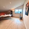 EG (145 m²): Offenes Wohn-/Ess-/Küchenkonzept (72 m²), Markenküche, Kaminofen, Schlafzimmer mit Bad en suite, HWR, Speisekammer, Gäste-WC.