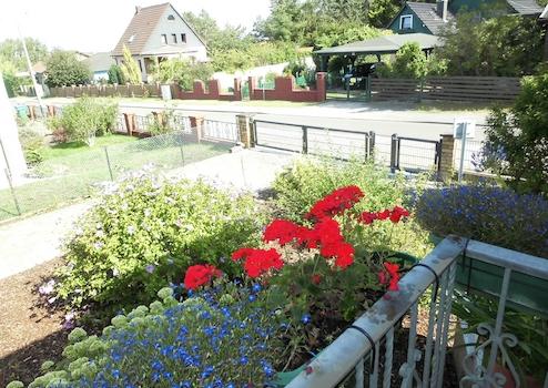 Auf dem gärtnerisch angelegten Grundstück befinden sich ein Gartenteich,