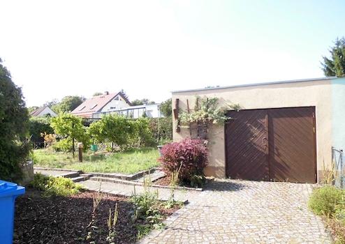 Das 752 m² große Grundstück ist vollständig eingefriedet und über die gepflasterte Auffahrt erreicht man die Garage.