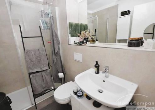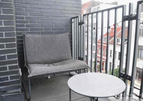 Mit dem Fahrstuhl gelangt man in die 4 Etage des 2019 erbauten Gebäudes. Hier befindet sich eine Businesswohnung, die keine Wünsche offenlässt. Der sehr geschmackvoll eingerichtete Wohnbereich ist der Balkon vorgelagert. Dieser ist auch über der voll ausgestatteten, offenen Küche zugänglich. Das Schlafzimmer ist mit einem Doppelbett, TV um Kleiderschrank ausgestattet. Das moderne Badezimmer geht vom Flur ab und verfügt über eine bodentiefe Dusche. Die Wohnung ist perfekt für 1 Person.