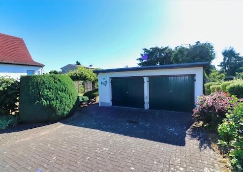Das Grundstück ist im vorderen Bereich mit einer Doppelgarage bebaut.
