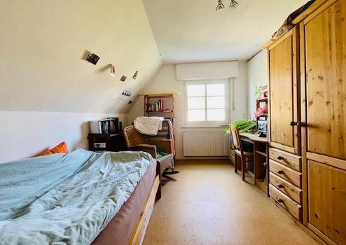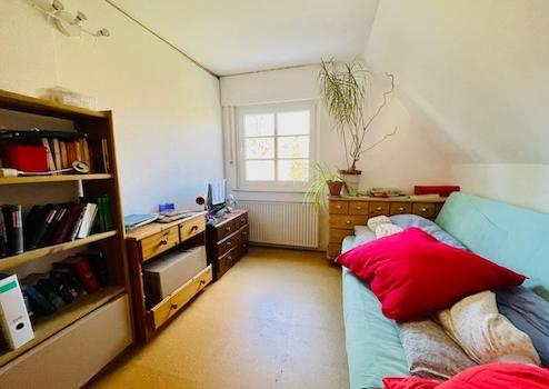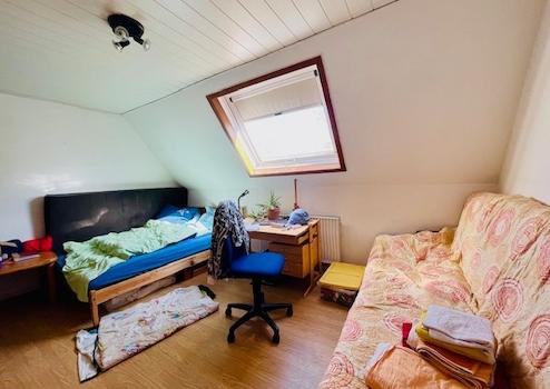 Eingangsbereich und Diele, eine große Wohnküche, ein Wohnzimmer mit Ausgang auf die Südwest-Terrasse und in den Garten, im Anbau ein Arbeitszimmer sowie ein Duschbad. Eine hübsche Holztreppe führt in das Obergeschoss. Hier befinden sich zwei Schlafzimmer ( ein großer Schlafraum wurde durch Leichtbauwände geteilt ), ein Kinderzimmer sowie ein Tageslichtbad mit Dusche, Waschtisch und WC. Das Haus ist teilweise unterkellert. Bei der Heizung handelt es sich um Gasheizung aus 2012. Ein gültiger Energieausweis ist in Bearbeitung und liegt uns in Kürze vor.