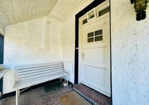 Die Eingangstür wurde nach Vorgaben des Denkmalschutzes aufgearbeitet
