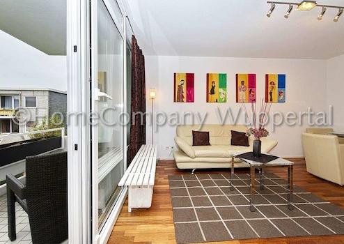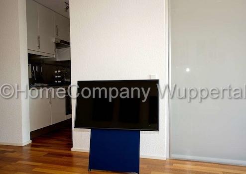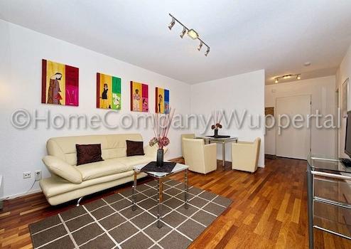 This well maintained residential complex is very close to the Nordpark. You can reach the city center of Wuppertal-BArmen in only ten minutes by car. The very recommendable apartment is equipped eith parquet flooring, tasteful furniture, it gives you all of the comfort you could ask for. The living room is furnished with leather-furniture and the dining table seating three people, a LCD-Smart TV including satelite reception will keep you entertained. The bedroom offers the tenant a double bed and is seperated from the main room by a glass sliding door. The integrated kitchen offers the tenant a ceramic cooktop and an oven, a dishwasher and much more.. The balcony invites the tenant to relax. A bathroom including a tub and a (seperate) walk-in closet round of this recommendable apartment. The washing machine with an option to dry is located in the basement. Right next to the house you can find the parking space. This is a non-smoking property. All ancillary and additional costs for one person, the usage of the internet and the parking space and cleaning of the stairways are included in the rent of € 950,00. A cleaning service inlcuding the cleaning of the staircase can be booked for an extra fee. The tenant pays for the final cleaning. It is charged at a rate of € 35.00 per hour.