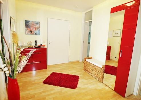 Sie gelangen entweder über das Treppenhaus oder den Personenaufzug zu Ihrer Wohnung und betreten diese durch den hellen, ansprechenden Flur.