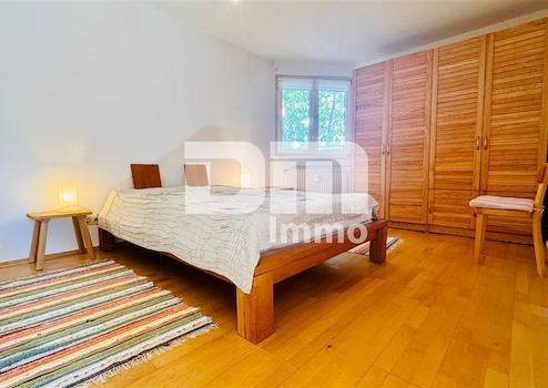 Komplettiert werden die Wohnräume dieser stimmigen Zweizimmerwohnung durch ein großes Schlafzimmer, in dem ebenfalls ein hochwertiges Echtholzparkett verlegt ist.
