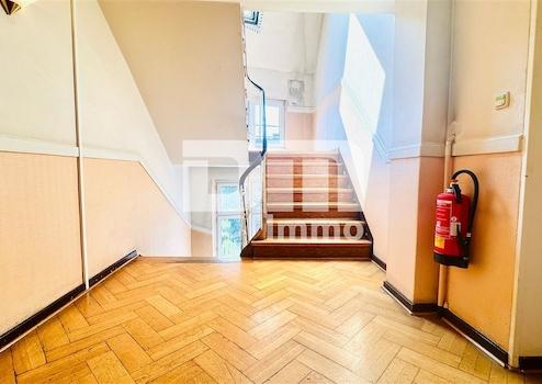 Sie betreten das Mehrfamilienhaus über einen seitlich gelegenen Eingang und gelangen in das gemeinschaftliche helle Treppenhaus, das mit hochwertigem Echtholzparkett ausgestattet ist.