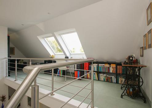 Über eine Treppe gelangt man auf die offene Galerie – ideal als Home-Office. Ein weiterer, separat zugänglicher Raum komplettiert diese Ebene.