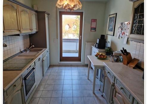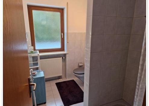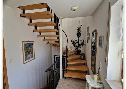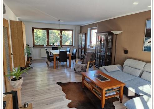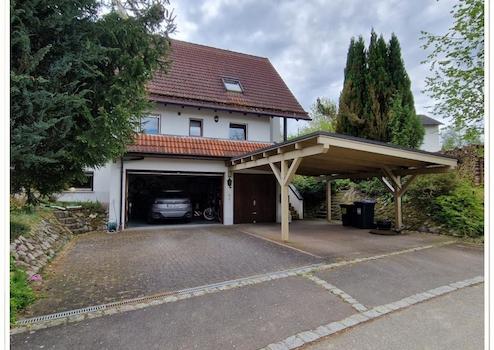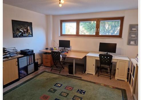 21 m² großes Zimmer, das sich für viele Zwecke eignet: es könnte als großes Büro dienen, oder als Jugend-zimmer, oder auch als Fitness-Oase. Neben diesem Zimmer gibt es einen weiteren beheizten Raum für Ihre Hobbies. Die ins Haus integrierte Garage gestattet Ihnen, jederzeit trockenen Fußes ins Haus zu gelangen, das Garagentor ist per Fernbedienung bequem vom Auto aus zu öffnen. Der 'normale' Hauszugang führt über eine Außentreppe zum Erdgeschoss, das recht 'klassisch' aufgeteilt ist: ein knapp 33 m² großes Wohnzimmer erhält Licht von Süden, Osten und Norden, nebenan befindet sich die voll eingerichtete Küche mit angrenzender Speisekammer. Von der Küche und einem Zimmer aus ist der fast 12 m² große Nordwest-Balkon zu erreichen, mit schöner Spätnachmittags- und Abendsonne. Ein Duschbad ergänzt den praktischen Grundriss. Über einen Wintergarten sind die große Südterrasse und der Garten zu erreichen.