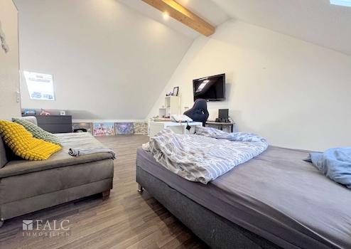 Das Dachgeschoss wurde im Jahr 2023 vollständig ausgebaut und erweitert das Raumangebot erheblich. Neben einem großen, lichtdurchfluteten Schlafzimmer steht hier ein weiterer Raum zur Verfügung, in dem die Heizungsanlage integriert ist. Dieser bietet zusätzlich eine Toilette und genügend Fläche für weitere Staumöglichkeiten. Damit eignet sich das Dachgeschoss sowohl als Rückzugsort für Eltern oder Jugendliche als auch als Gäste- oder Arbeitsbereich.