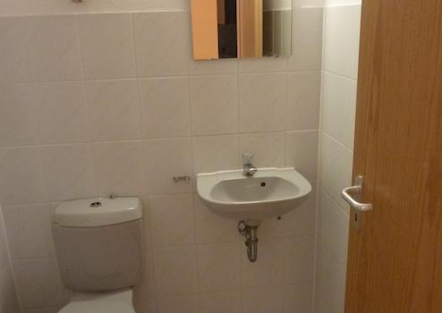 Das Laminat in Wohn- und Schlafräumen ist älter und erneuerungswürdig.