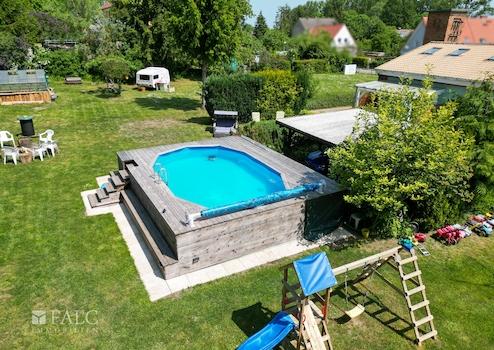 Diese Immobilie ist derzeit ein wahres Kinder-Paradies! Hier können Kinder, in einem geschützten Rahmen, auf dem großen und umlaufend eingezäunten Grundstück, frei toben, auf dem Klettergerüst herumturnen, im Sommer in dem Pool vergnügt plantschen, u. v. m.
