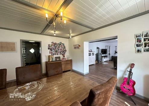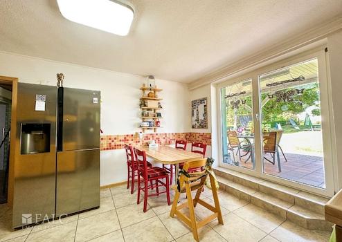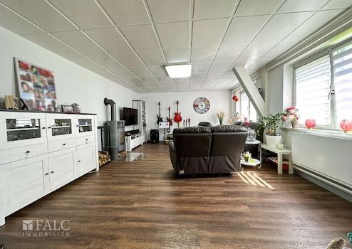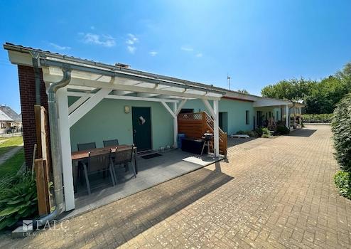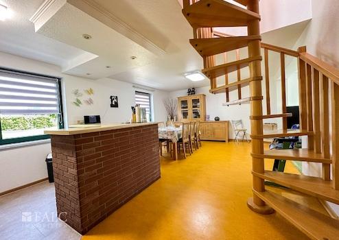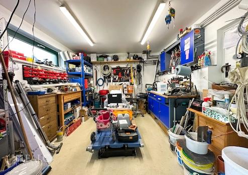 Das Haupthaus bietet dazu, mit ca. 166 m² Wohnfläche, einen angenehm großzügigen Wohnraum für die ganze Familie. Der zweite Wohnbereich, innerhalb der Immobilie, wird derzeit als Ferien-Wohnung genutzt. Die räumliche Trennung, durch einen als Garagenkomplex, mit Werkstatt und Heizungs-Technikraum, bietet den beiden Wohnbereichen jeweils Diskretion und Distanz.