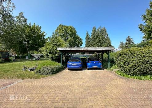 Auf dem Grundstück befinden sich ein Kinder-Spielplatz, ein Sommer-Pool, ein Gewächshaus, ein Doppel-Carport. Beide Wohneinheiten verfügen über eine überdachte Terrasse, mit Blick in den Garten.