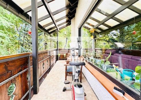 Vom Wohnzimmer wie auch vom großen Schlafzimmer haben Sie Zugang auf den seitlich umlaufenden, überdachten Balkon, der einen weiteren Ort der Entspannung bietet.