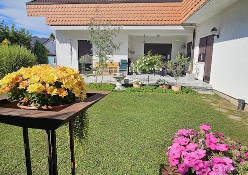 Der schöne, große und liebevoll angelegte Garten mit seiner umlaufenden grünen Einfriedung bietet eine wunderbar intime Privatphäre und die teilüberdachte Terrasse trotzt auch einem Gewitterschauer bei der Grillparty.