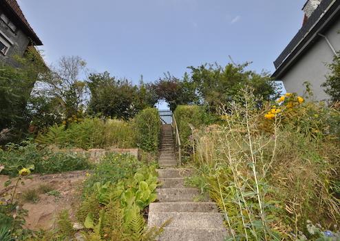 Außenanlage: diverse Bäume, Sträucher, Stauden, Gräser und Wiese
