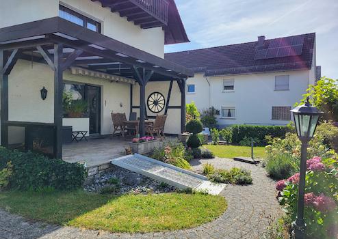 - Zugang vom Wohnzimmer zu Terrasse und Garten