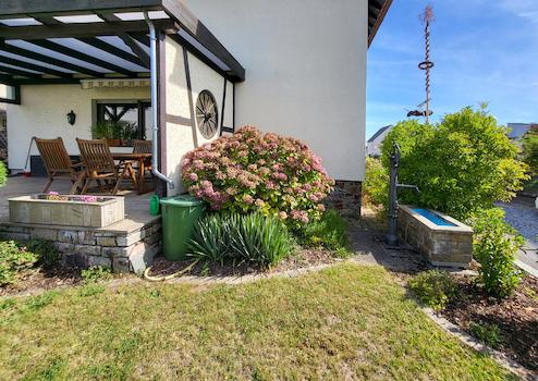 Die Immobilie ist voll unterkellert. Den liebevoll angelegten Garten können Sie sowohl über das Wasser in der Regentonne als auch über die Frischwasserpumpe im Garten bewässern. Ihre Fahrzeuge finden in der Einfahrt des Hauses Platz.