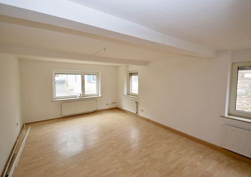 Die Wohnung im Erdgeschoss steht leer und kann kurzfristig bezogen werden, die Wohnung im Ober- und Dachgeschoss ist für 840,- p.m. vermietet.