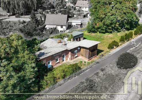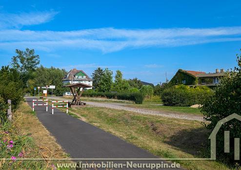 Die Immobilie liegt in Lobeofsund, einem ruhigen Ortsteil von Königshorst in Fehrbellin. Direkt am Grundstück verläuft der Radweg „Stille Pauline“, eine beliebte touristische Strecke durch das Ruppiner Seenland, die stark von Radfahrern und Ausflüglern frequentiert wird. Dadurch bietet der Standort interessante Perspektiven auch für eine gewerbliche Nutzung, beispielsweise als Café oder kleine Pension. Gleichzeitig ist Fehrbellin mit Einkaufsmöglichkeiten, Schulen und Infrastruktur in wenigen Fahrminuten erreichbar.