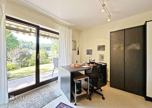 Im Untergeschoss befinden sich drei weitere Zimmer, die durch ihre Helligkeit und den Blick ins Grüne überzeugen.
