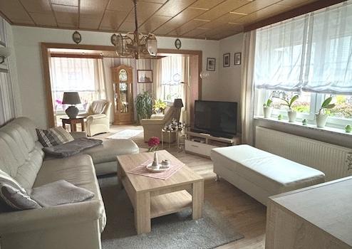 Die angebotene Doppelhaushälfte verfügt über vier Zimmer, verteilt auf Erd- und Dachgeschoss. Ferner sind eine Einbauküche, ein Tageslichtbad im Erdgeschoss sowie ein WC im Dachgeschoss vorhanden. Die Räumlichkeiten sind hell und freundlich gestaltet. Auch bietet der vorhandene Wintergarten zusätzlichen Wohnkomfort (keine Bauunterlagen vorhanden). Von diesem haben Sie einen herrlichen Blick in den liebevoll angelegten Garten. In diesem ist zudem ein Gartenhaus mit Terrasse vorhanden. Das Haus wird über eine Ölzentralheizung (Bj. 2003) beheizt und befindet sich in einem gepflegten Unterhaltungszustand. Alles ist sehr gepflegt und ordentlich. Im Jahr 2021 wurde das Wohnzimmer renoviert und alle Innentüren erneuert. Auch sind überwiegend Kunststofffenster aus dem Jahr 2008 vorhanden, welche teilweise mit Außenrollläden ausgestattet sind. Zur Immobilie gehört außerdem eine Garage, die Ihnen bequemes Parken ermöglicht.