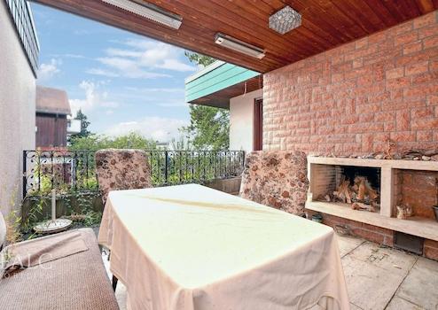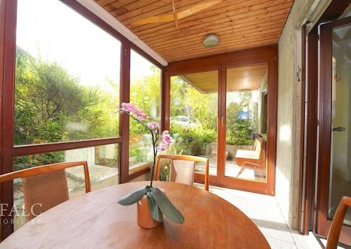 Die modernisierte Einliegerwohnung präsentiert sich in einem zeitgemäßen Design mit strahlend weißen Wänden und einem hellen Laminatboden, der eine freundliche und einladende Atmosphäre schafft. Über den gemütlichen Wohn-/Schlafbereich gelangen Sie direkt in den lichtdurchfluteten Wintergarten, der zusätzlichen Raum für Entspannung bietet. An diesen schließt sich eine eigene Terrasse an, die der perfekte Ort für sonnige Stunden im Freien ist. Direkt neben der Garage befindet sich der Zugang zur Einliegerwohnung.