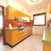 Die charmante Küche mit weißem Fliesenboden ist ebenfalls über den Essbereich erreichbar und besticht durch ihren Retro-Stil. Die großzügigen Holzschränke bieten reichlich Platz für Ihre Kochutensilien, während ein großes Fenster für Licht und Frischluft sorgt. An die Küche schließt sich ein geräumiger Nebenraum an, der vielseitig genutzt werden kann – sei es als Hauswirtschaftsraum, Speisekammer oder zur Erweiterung der Küche. Auch dieser Raum verfügt über ein Fenster, das zusätzliches Licht spendet und die Nutzungsmöglichkeiten erweitert.