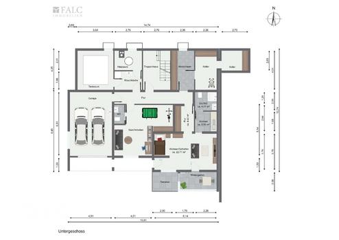 Das Untergeschoss bietet Ihnen zusätzlichen Raum: Hier finden Sie einen großen Raum mit separatem WC, vier praktische Kellerräume, eine Waschküche sowie den Heiz- und Technikraum. Ein direkter Zugang zur Garage rundet das Angebot ab.