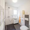 Das Obergeschoss ist wie das Erdgeschoss geschnitten. Hier stehen Wohnbereich mit Balkon, Küche, zwei Schlafräume sowie ein Bad mit Wanne zur Verfügung.