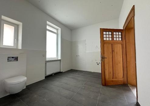 Erdgeschoss: große Halle mit Einfahrmöglichkeit von Hof; Flurbereich mit Heizungsraum und zwei weiteren Räumen, davon ein Heizraum und einer mit Zugang ins Freie; 2 Treppenhäuser als Zugang zu den Obergeschossen; weiterer Raum (Fußbodenheizung ist bereits vorbereitet) – Ausbau einer Einliegerwohnung möglich – Badezimmer vorgesehen + 2 weitere Zimmer