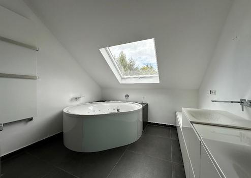 Obergeschoss: Großes Tageslichtbad mit Eckbadewanne und Whirlpoolfunktion, 2 Zimmer davon ein Zimmer mit Ankleideraum und ein großes Zimmer mit Balkonzugang
