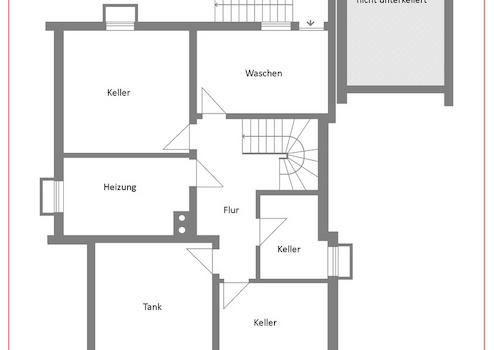 Der geräumige Keller bietet vielseitige Nutzungsmöglichkeiten: Ob als Gästezimmer, Hobbyraum, Homeoffice oder Lagerplatz - hier findet jede Idee Raum zur Entfaltung. Die Flexibilität der Grundfläche ermöglicht individuelle Gestaltung und Veränderung ganz nach Ihren Bedürfnissen.