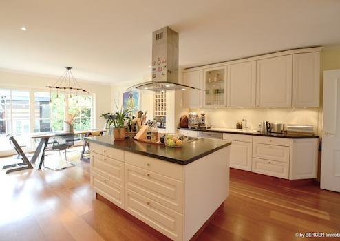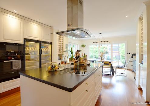 - hochwertige Einbauküche mit Kochinsel, Weinkühlschrank und Anbau