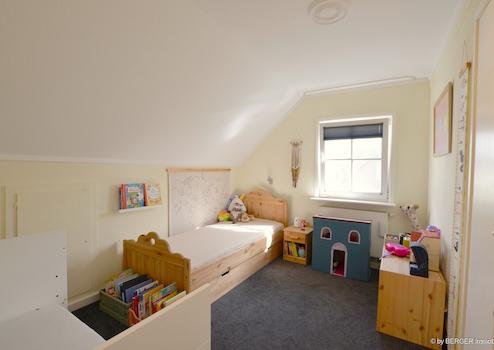 Im Dachgeschoss befindet sich der private Bereich. Ein offener Galeriebereich eignet sich hervorragend als Leseecke, Kinder-Malplatz oder kleiner Arbeitsplatz. Von hier gelangen Sie in die einzelnen Zimmer. Besonders das große Schlafzimmer mit Einbauten, Ankleide, Verschattung an den Fenstern und Klimaanlage wird Sie begeistern. Das moderne Duschbad wurde 2009 erneuert und stilvoll ausgestattet. Zwei weitere Zimmer lassen sich flexibel als Kinder-, Gäste- oder Arbeitszimmer nutzen. Der Spitzboden bietet zusätzlichen Stauraum und ist über eine Einschubtreppe erreichbar.