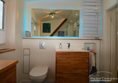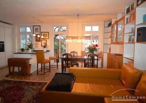 Diese stilvoll eingerichtete 2-Zimmer-Maisonette bietet ruhiges Wohnen im Hinterhof, mitten im lebendigen Szenekiez. Auf der oberen Etage befinden sich ein Schlafzimmer, ein frisch renoviertes Badezimmer mit Dusche und Badewanne, ein Arbeitsbereich, der wie ein dritter Raum genutzt werden kann, sowie ein begehbarer Kleiderschrank. Im unteren Bereich lädt der offene Wohnraum mit moderner Küche, ausgestattet mit einer Induktionsplatte mit Grillfunktion und einem Dampfgar-Backofen, zum Verweilen ein. Der angrenzende Balkon mit Markise bietet eine gemütliche Außenfläche. Die Wohnung besticht zudem durch Highlights wie ein Heimkino mit Beamer und Leinwand und wird voll möbliert vermietet – inklusive Bettwäsche, Handtücher und Geschirr. Trotz zentraler Lage ist die Wohnung angenehm ruhig und ideal angebunden. Perfekt für alle, die modernes Design und urbanes Leben schätzen!
