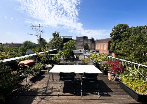 •Die schön gestaltete, große Dachterrasse wird von den Mietparteien gemeinsam genutzt.