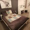 - ein Schlafzimmer mit 160er Bett, einem geräumigen Schrank und TV-Gerät
