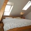 Der große, helle und freundliche Raum im Dachgeschoss wird momentan als Schlafzimmer verwendet. Diesen offenen Raum erreichen Sie über eine Wendeltreppe. Die Wärmeversorgung erfolgt dort durch eine Elektroheizung und mit der aufsteigenden Wärme des Kachelofens.