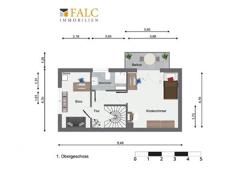 Die Räume 1. Obergeschoss und Dachgeschoss können Sie nach Ihren Wünschen gestalten. Hier ist alles möglich, vom Schlafzimmer oder Arbeitszimmer bis hin zu einem Ankleidezimmer. Sie Entscheiden! Das größere Zimmer im 1. Obergeschoss verfügt über den zusätzlichen Kamin, sowie einen Zugang zu dem nach Süd-West ausgerichteten Balkon. In dem anderen Zimmer finden Sie die Gas-Zentralheizung, wodurch dieses Zimmer nicht für alle Nutzungsarten geeignet ist. Das deckenhoch geflieste Tageslichtbad ist mit einer Dusche, einem Waschbecken und einer Toilette bestückt.
