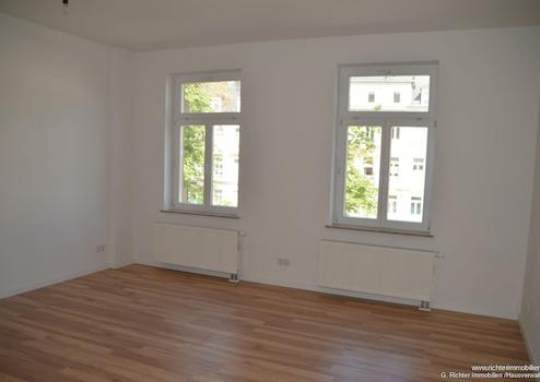 Das Herzstück der Wohnung ist das helle Wohnzimmer, das mit hochwertigem Laminatboden ausgestattet ist und einen einladenden Wohnbereich darstellt.