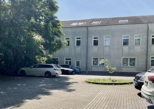 - hinter dem Gebäude befindet sich ein großer Parkplatz mit über 10 Stellplätzen