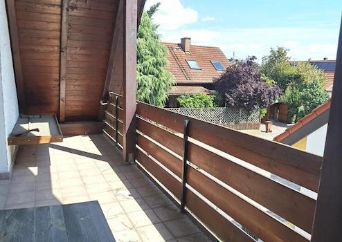 Einladender überdachter Balkon im Dachgeschoss, sowie überdachte Terrasse im Erdgeschoss: Hier können Sie die Sonne genießen, den Blick ins Grüne schweifen lassen oder gemütliche Stunden im Freien verbringen.