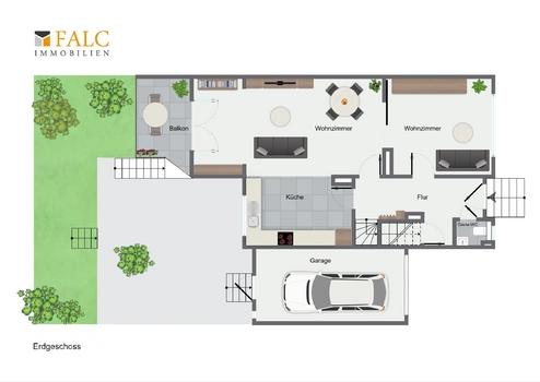 Besonders hervorzuheben sind die zwei Balkone, der pflegeleichte Süd-Garten und die Garage, die das Angebot abrunden.