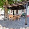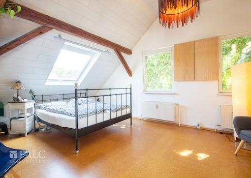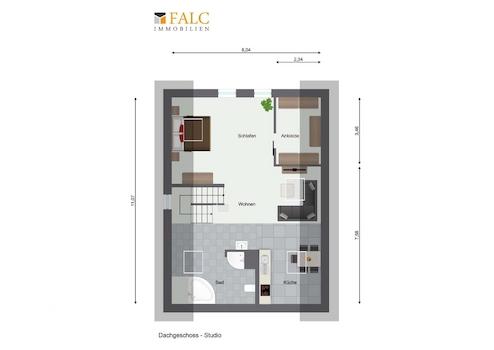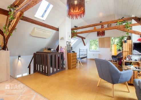 Ein weiteres Highlight des Hauses ist das im Dachgeschoss befindliche ca. 64 m² große Studio. Das Studio wird als multifunktioneller Raum genutzt und bietet eine Küchenzeile, ein offenes Badezimmer mit Badewanne und Dusche, eine Ankleide sowie genügend Platz für einen Schlaf- und Wohnbereich.