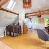 Im Wohnhaus wurde das alte Fachwerk in einigen Räumen im Bereich der Decke und der Wände gestalterisch sichtbar gelassen.