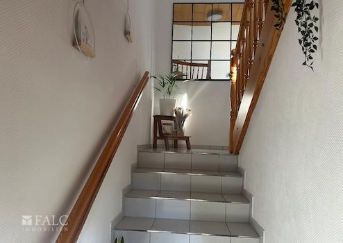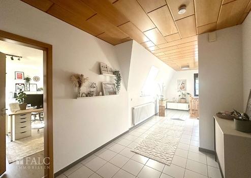 Die Wohnung im Obergeschoss ist ebenfalls über eine eigene Haustür zu erreichen, diese liegt auf auf der anderen Hausseite. Somit haben beide Wohnparteien ihren separaten Eingangsbereich mit viel Privatsphäre.