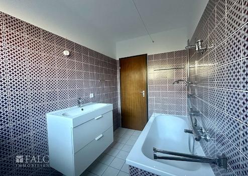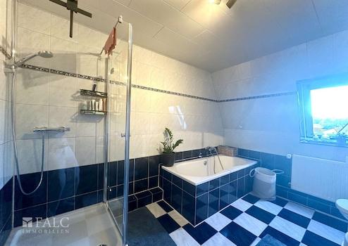 - Bad mit Wanne, Waschtisch, WC und Fenster (Fliesen)